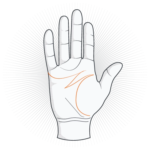 | Линия сердца | Верхняя часть ладони под пальцами | Формирует верхние вершины и край силуэта | Есть заметная дуга или ломаная, не распадается на мелкую сетку |